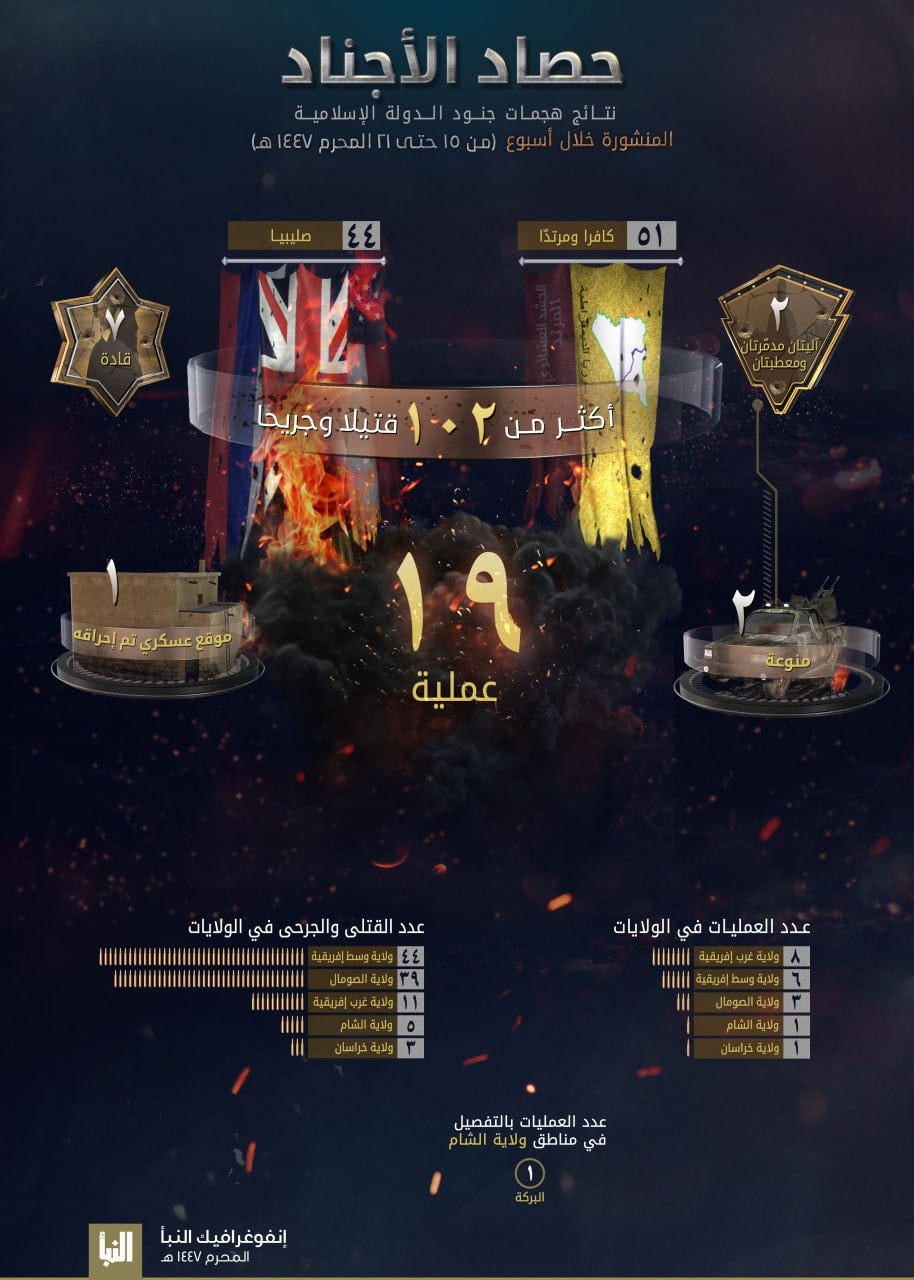 IS claims to have conducted 19 operations in all the mentioned areas and to have caused 102 deaths and injuries.