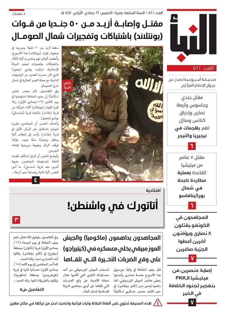 Daniele Garofalo Monitoring is registered with the Italian National ISSN Centre and the Centre for the Registration of Serial Publications (CIEPS) in Paris.ISSN (International Standard Serial Number): 3103-3520ORCID Code: 0009-0006-5289-2874The Islamic State publishes its al-Naba magazine every week, providing significant information on the group’s military, ideological, and propaganda activities in its provinces.
