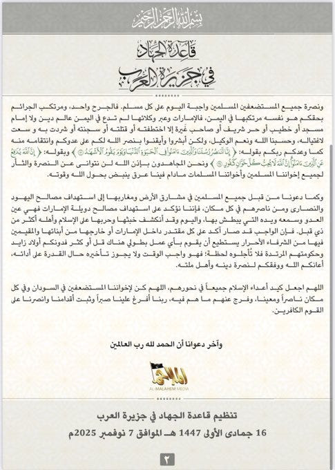 Daniele Garofalo Monitoring is registered with the Italian National ISSN Centre and the Centre for the Registration of Serial Publications (CIEPS) in Paris.ISSN (International Standard Serial Number): 3103-3520ORCID Code: 0009-0006-5289-2874Objectives of the analysis: A newsletter that collects the main propaganda of jihadist organisations and groups from 1 to 8 November in a single publication.