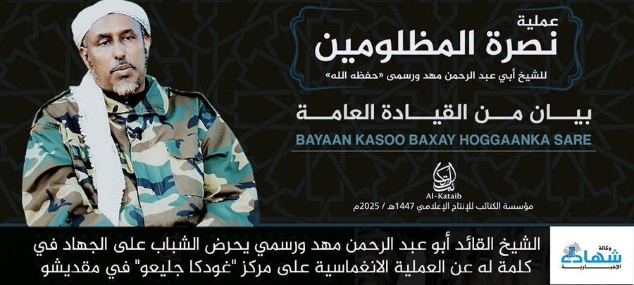 In his speech, published on the movement’s media platforms, Warsame praised the operation carried out by the movement’s fighters, considering it a response to what he called “injustices and violations” within the centre, stressing that “the attack was carried out at 4.50 p.m. with the explosion of a vehicle bomb (SVBIED) followed by a direct raid on the site, the control of the buildings and the liberation of the prisoners detained there”.