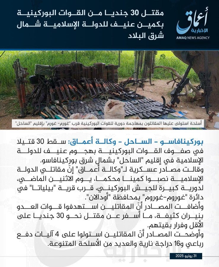 The Amaq News Agency, the official media of the Islamic State, issued a long statement claiming an attack by fighters from the Sahel province (IS-Sahel) against a Burkinabè army patrol in the Gorom-Gorom area, Oudalan province, Sahel Region. Burkina Faso