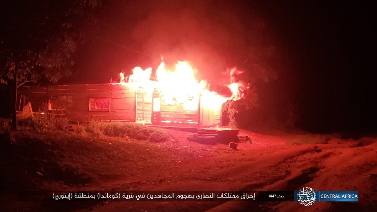The Islamic State's official media published a photo report of its fighters from the Central Africa Province (ISCAP) attacking a Christian village in the Komanda area, Ituri province. DR Congo.