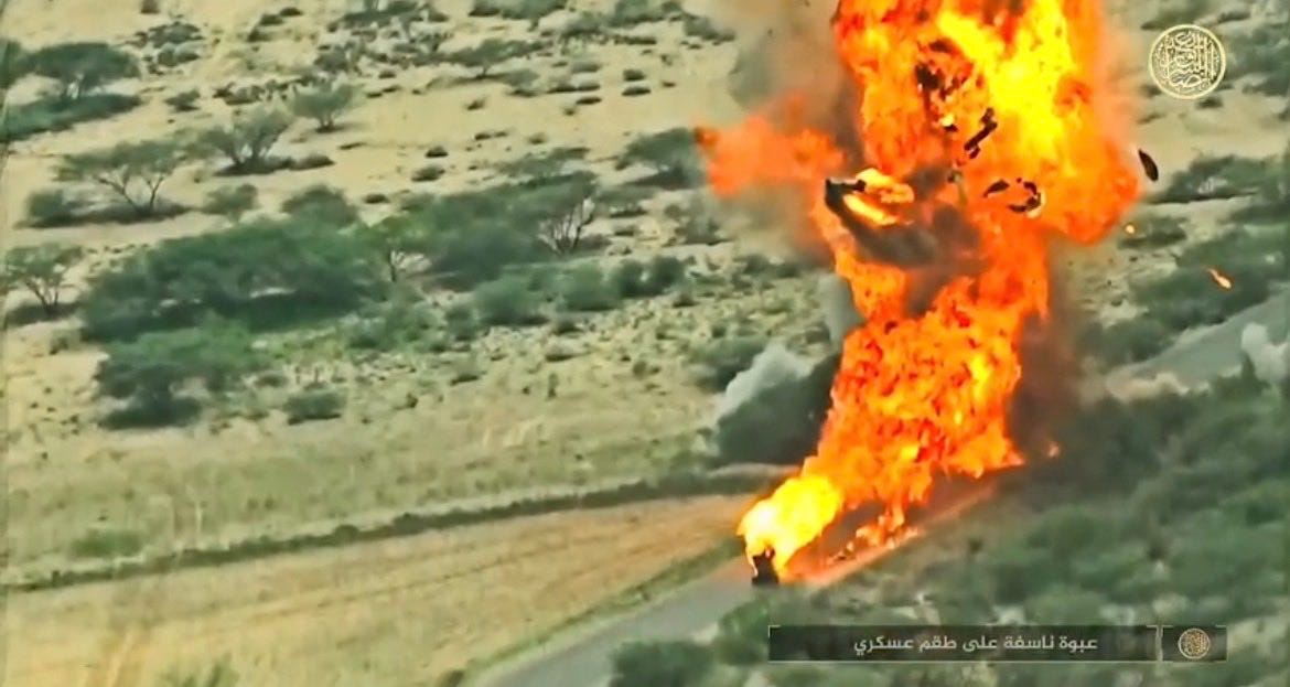 The video shows numerous operations carried out with IEDs, VBIEDs, sniping, the use of drones, night-time operations (with the use of night vision goggles), etc. Yemen