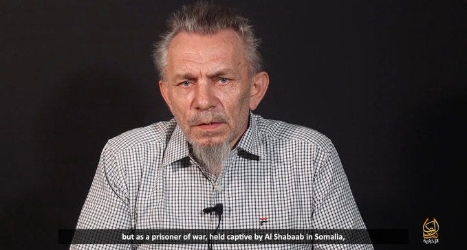 Al-Kataib Media, al-Shabaab (AS), has released a 2:44-minute video showing a member of the United Nations (UN) team who was captured by the Somali jihadist group in central Somalia.