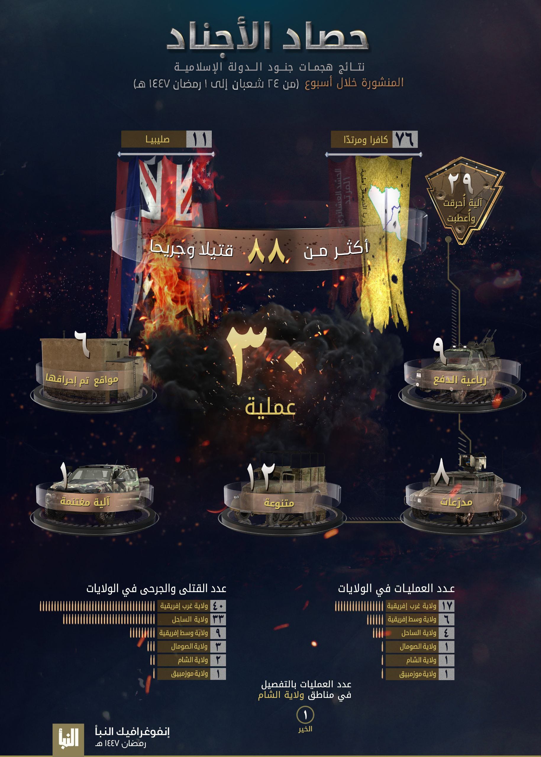 The official media of the Islamic State published an issue of the weekly al-Naba this week (535). Issue 535, eight pages long, covers the week of 24 Sha’ban to 1 Ramadan1447, from 12 to18 February 2026. The main infographic summarises the areas affected by military operations this week, including Nigeria, Niger, Mali, Burkina Faso, Somalia, Syria, Mozambique, and the Democratic Republic of Congo.