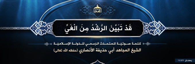 The Islamic State has published its first official message from its leadership after about two years of media silence. The audio, released by the al-Furqan Foundation, from spokesman Abu Hudhayfa al-Ansari, does not announce a new strategic offensive. It is a message of survival.