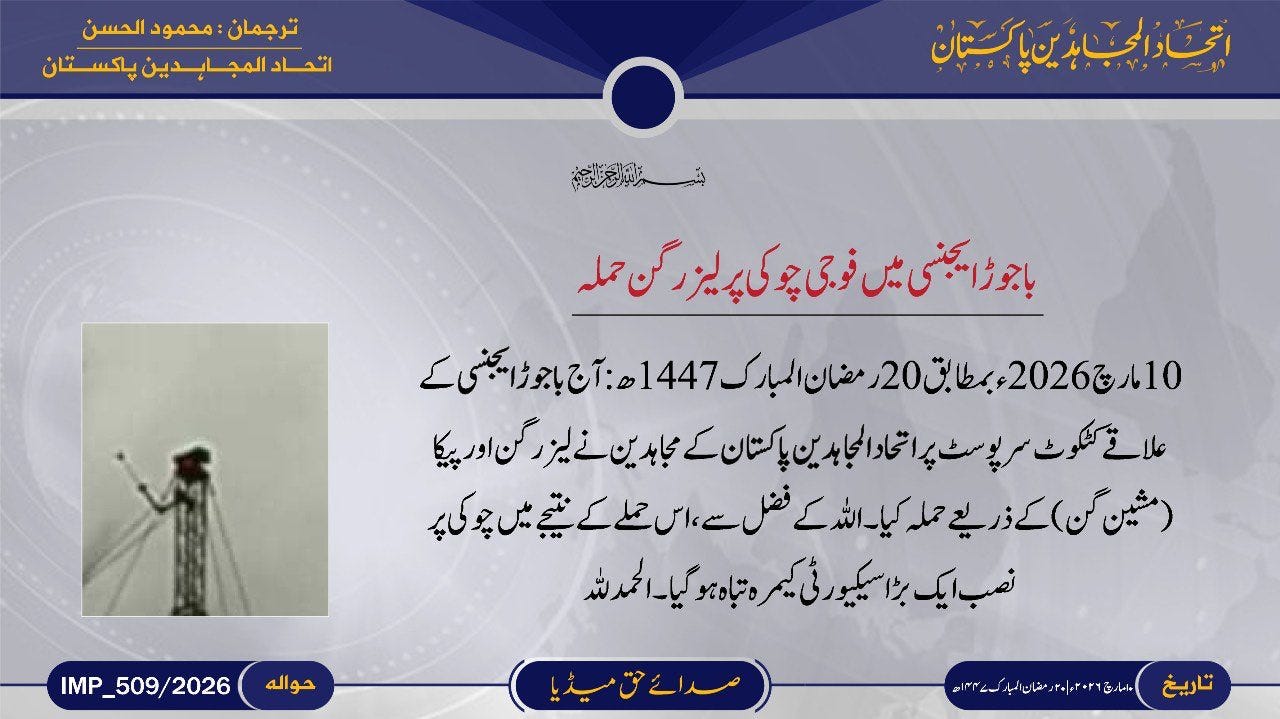 Al-Mansur Media, Ittehad-ul-Mujahideen Pakistan (IMP), a Pakistani jihadist organisation comprising the Hafiz Gul Bahadur (HBG) group, Lashkar-e-Islam, and Harkat Inqilab-e-Islami Pakistan (HIIP), has released a 0:55-minute video showing missile attacks against the Pakistani Army in the districts of South Waziristan, in the province of Khyber Pakhtunkhwa, Pakistan.