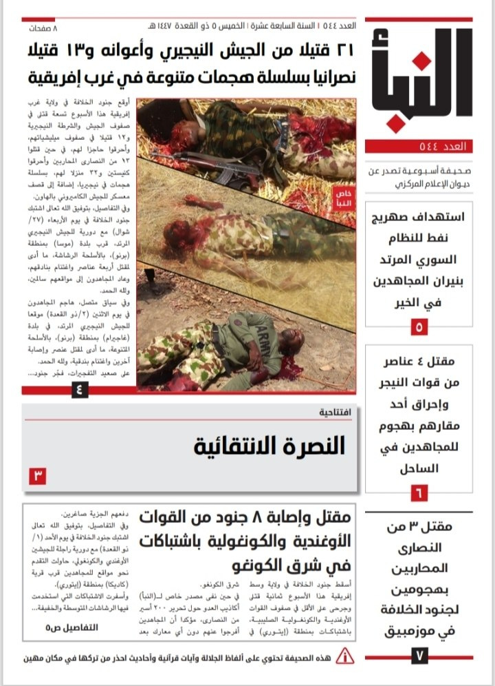 This intelligence brief provides a structured analysis of the Islamic State’s operational activity, focusing on West Africa, Syria, and Africa theatres, based on al-Naba Issue No. 544, to inform decisions on threat dynamics and strategic planning.