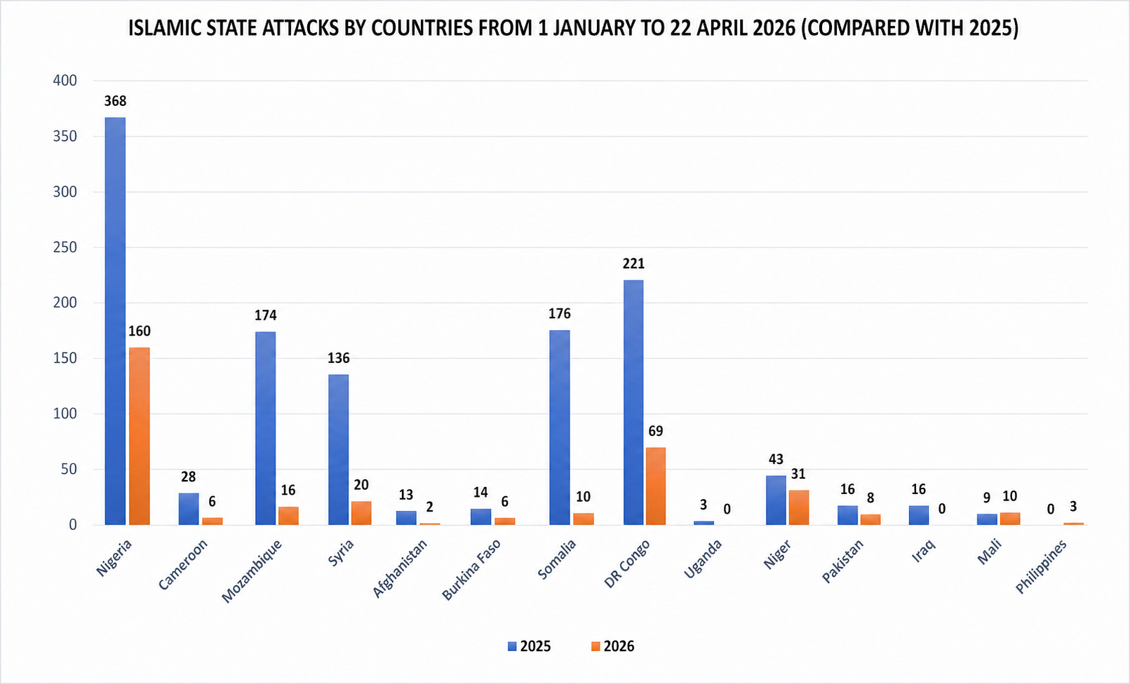 Operational pressure should remain concentrated on West Africa, where the scale and frequency of attacks indicate the highest risk to regional stability. Priority should be given to disrupting ISWAP’s mobility corridors, logistics chains, and cross-border facilitation networks, particularly along the Nigeria-Niger-Cameroon interface.