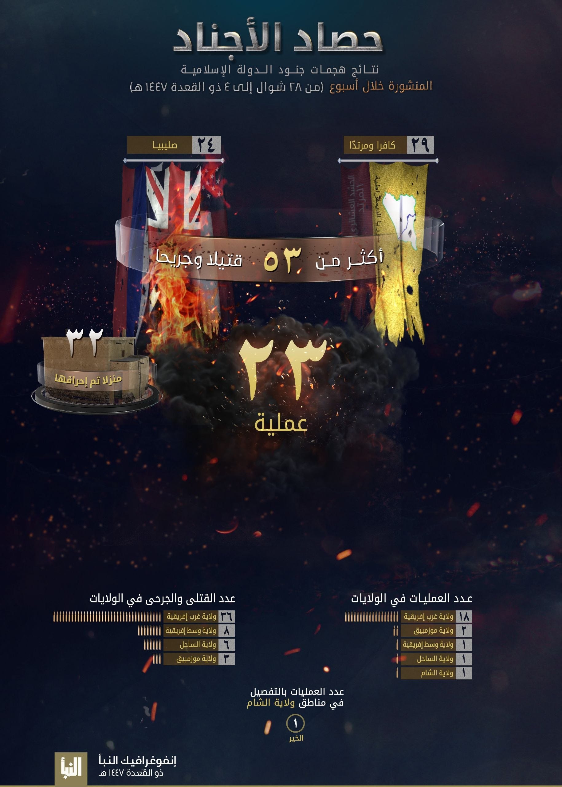 IS claims to have conducted 23 operations in all the mentioned areas and to have caused 53 deaths and injuries.