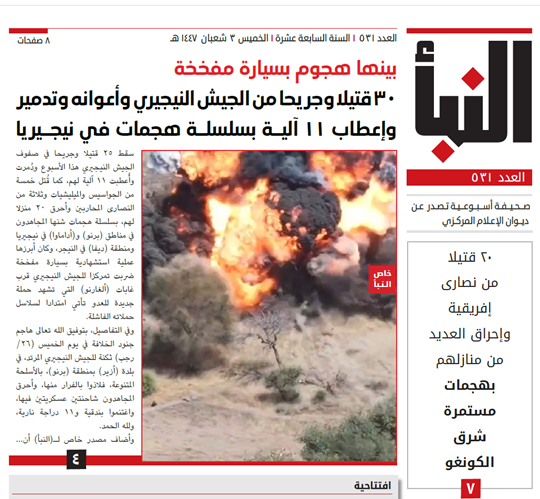 Al-Naba generally includes most of the statements and photos published daily over the past week on its official channels, although often with new elements or additional details, both written and photographic. However, al-Naba won’t include unpublished statements or messages.