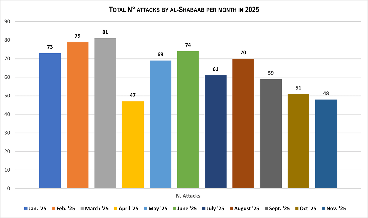 In November 2025, al-Shabaab activity reflects: